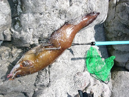 イタチウオ。60センチを越える。突いたときに暴れまくり銛が