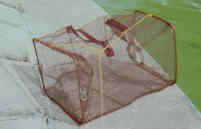 エビカゴ。この中にえさを入れ川や池に沈めるだけである。 |