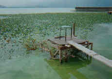 諏訪湖(長野県下諏訪町) ためしに早朝にソーセージとミミズをいれて投入してみた。 |
